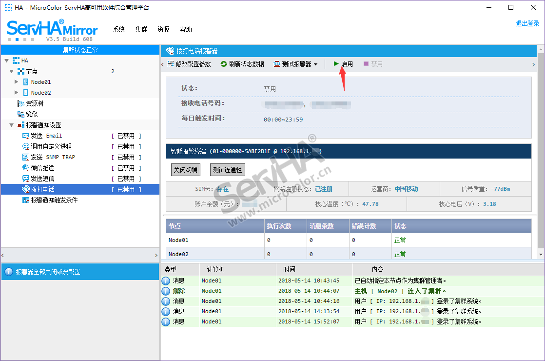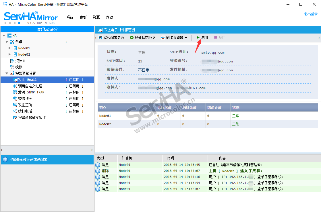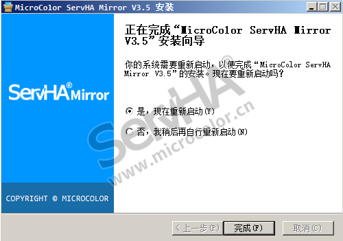 注意:必须两台服务器都重启后,热备软件才能正常配置。