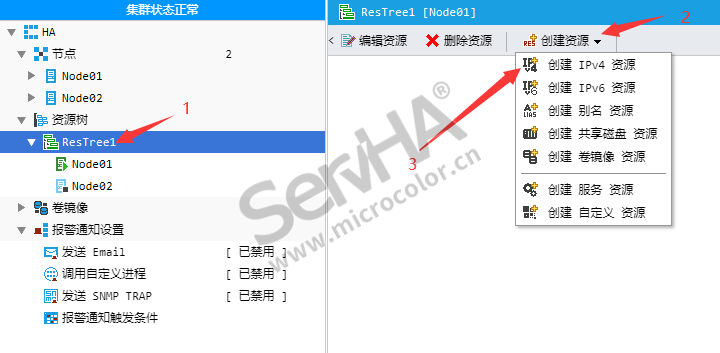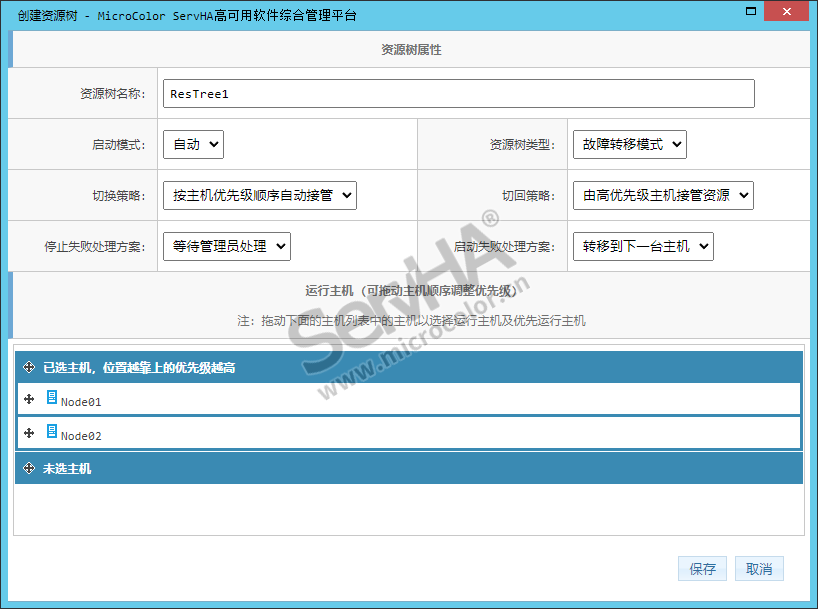 资源树的“启动模式”必须为“自动”,“切换策略”为“按主机优先级顺序自动接管”;