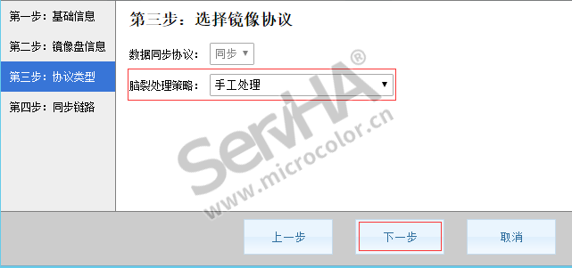 在配置监控端中选择脑裂的镜像,点击工具栏上“脑裂恢复”按钮,在弹出的“脑裂恢复”窗口中根据提示信息选择恢复即可。