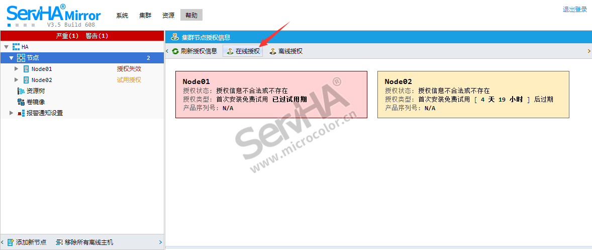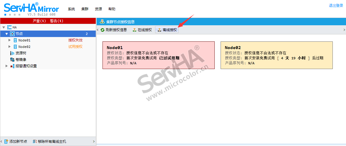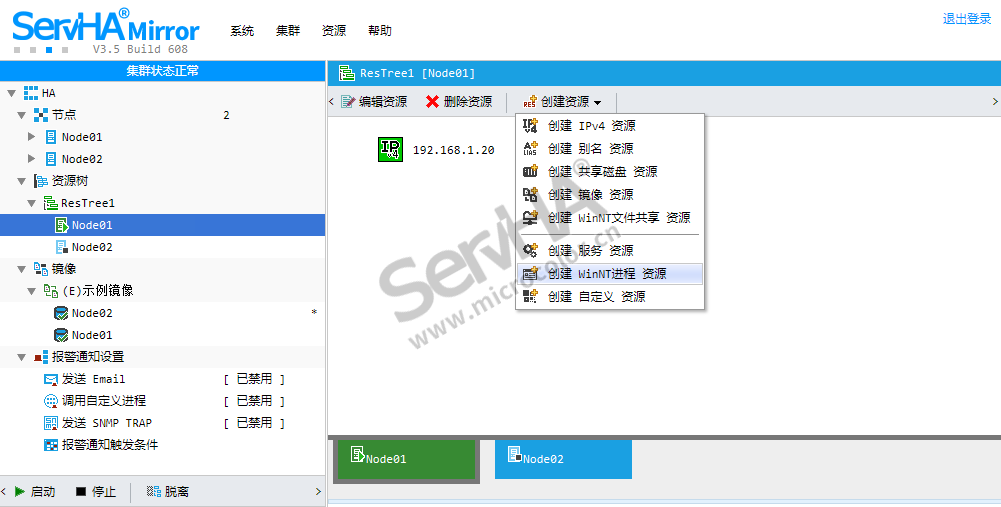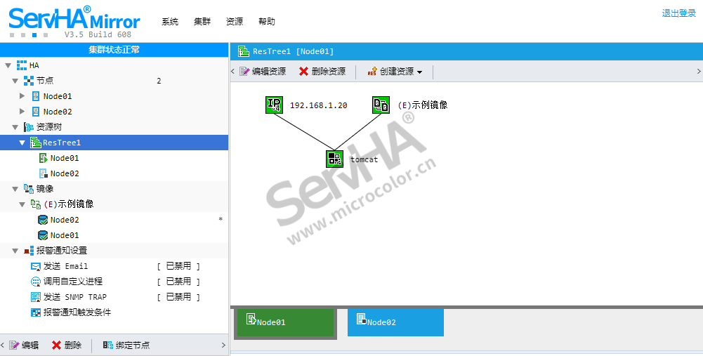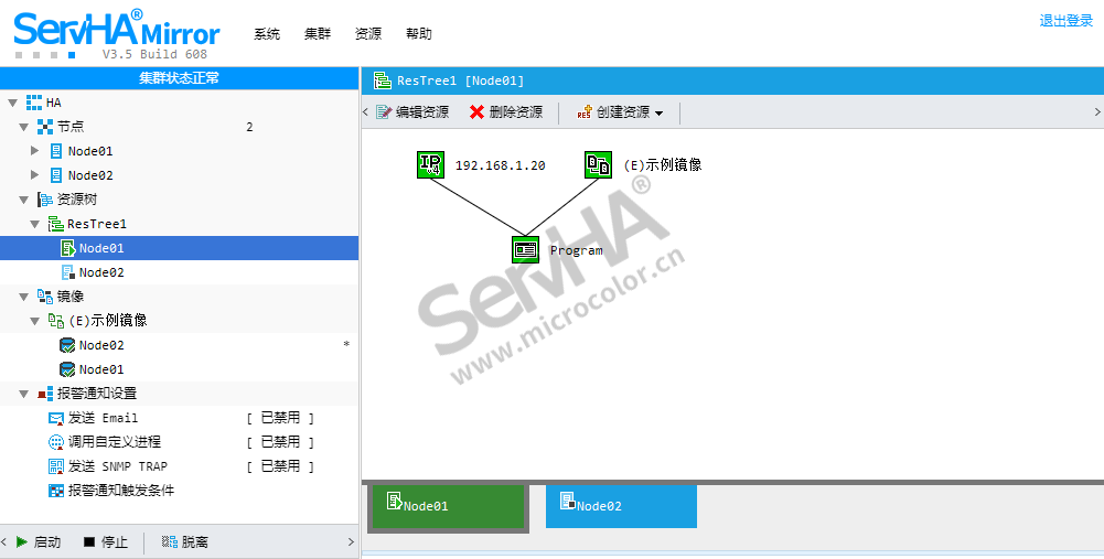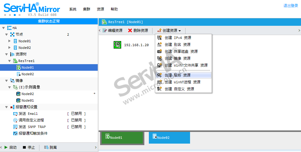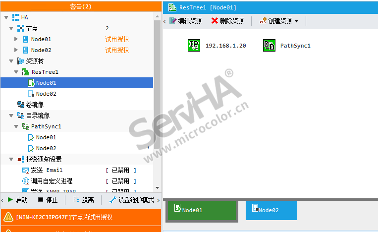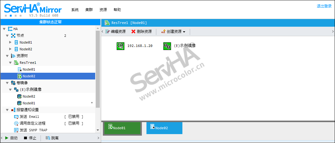 若切换发生失败,资源树不会自动切回至之前运行的服务器并等待手工处理;